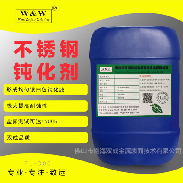 FL-D06处理后不锈钢表面变成均匀银白色;同时添加了高效缓蚀剂、抑雾剂,防止金属出现过腐蚀和氢脆现象、抑制酸雾的产生;钝化后耐腐蚀能力提到15至50倍,达到已通过盐雾测试1500H;适用于所有的SUS200、SUS300系列不锈钢, 废水中和处理后可直接排放,对环境无影响。