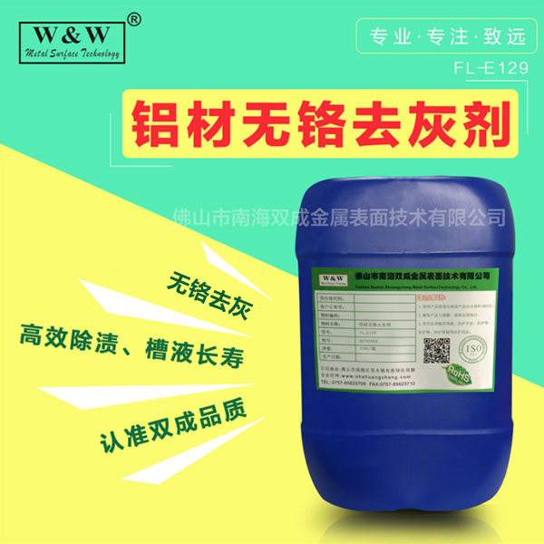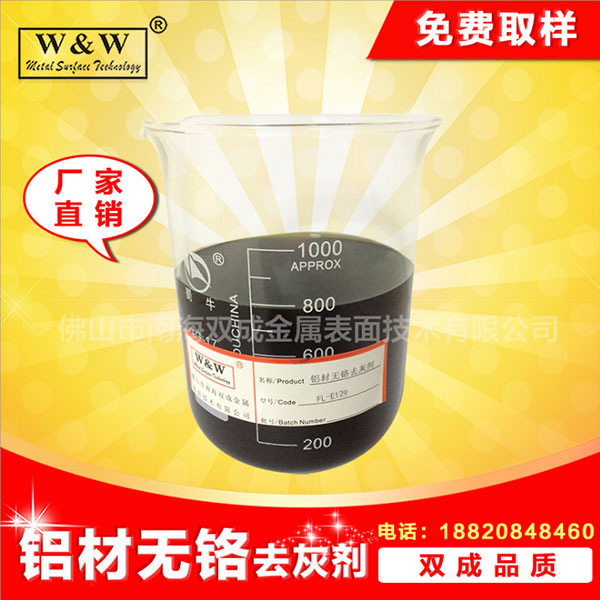 本品能完全代替铬酐去灰,属无铬环保产品。能有效除去铝或铝合金表面的氧化膜,污渍,适用于点焊﹑铝氧化﹑粗化或化学抛光及碱性浸蚀后使用。其去渍效果优良,既不会损坏工件表面状态,又能延长槽液寿命(但不适用于高硅合金如铸铝)